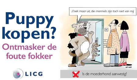 Helaas is het voor de consument moeilijk om het onderscheid te kunnen maken tussen fokkers die te goeder trouw zijn en de malafide fokkers. De campagne ‘ontmasker de foute fokker’ helpt daarbij. Met cartoons en animaties laat het LICG zien waar het mis kan gaan en waar een puppykoper op moet letten. Deze worden via social media en online verkoopkanalen verspreid. Basis van de campagne is de puppychecklist van het LICG, een handig hulpmiddel voor iedereen die een pup wil kopen.